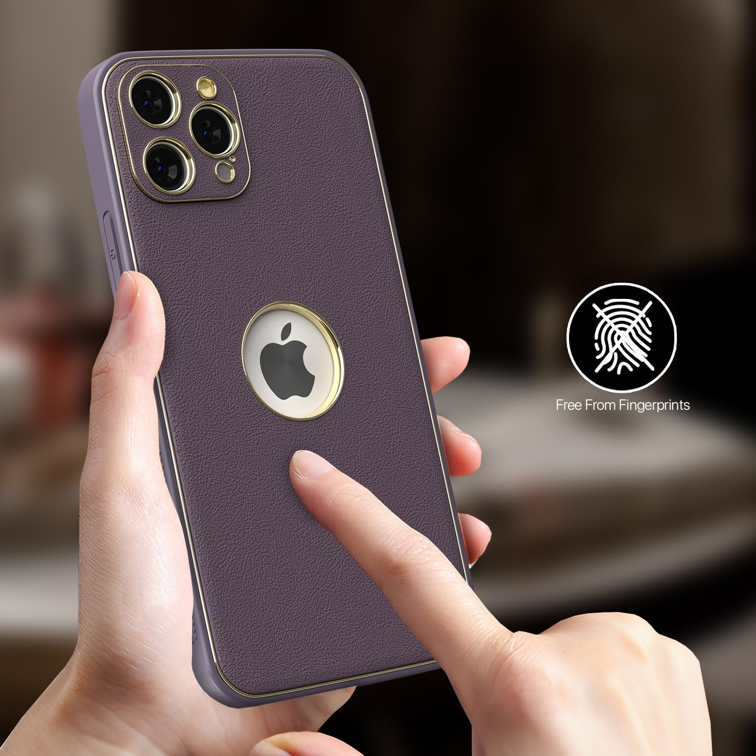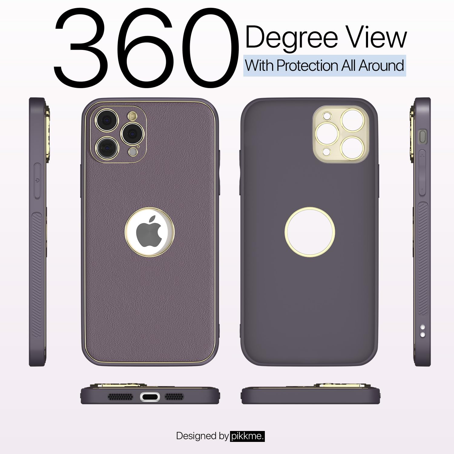 Pikkme iPhone 15 Pro Gold Electroplated Leather Chrome Back Cover (Purple)