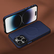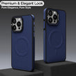 Pikkme iPhone 15 Pro Max Pu Leather with Metal Frame Lens Protection Bumper Case (Blue)