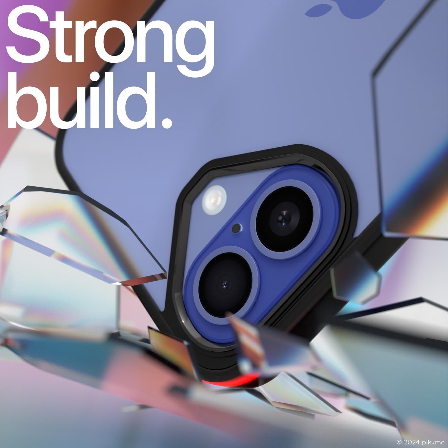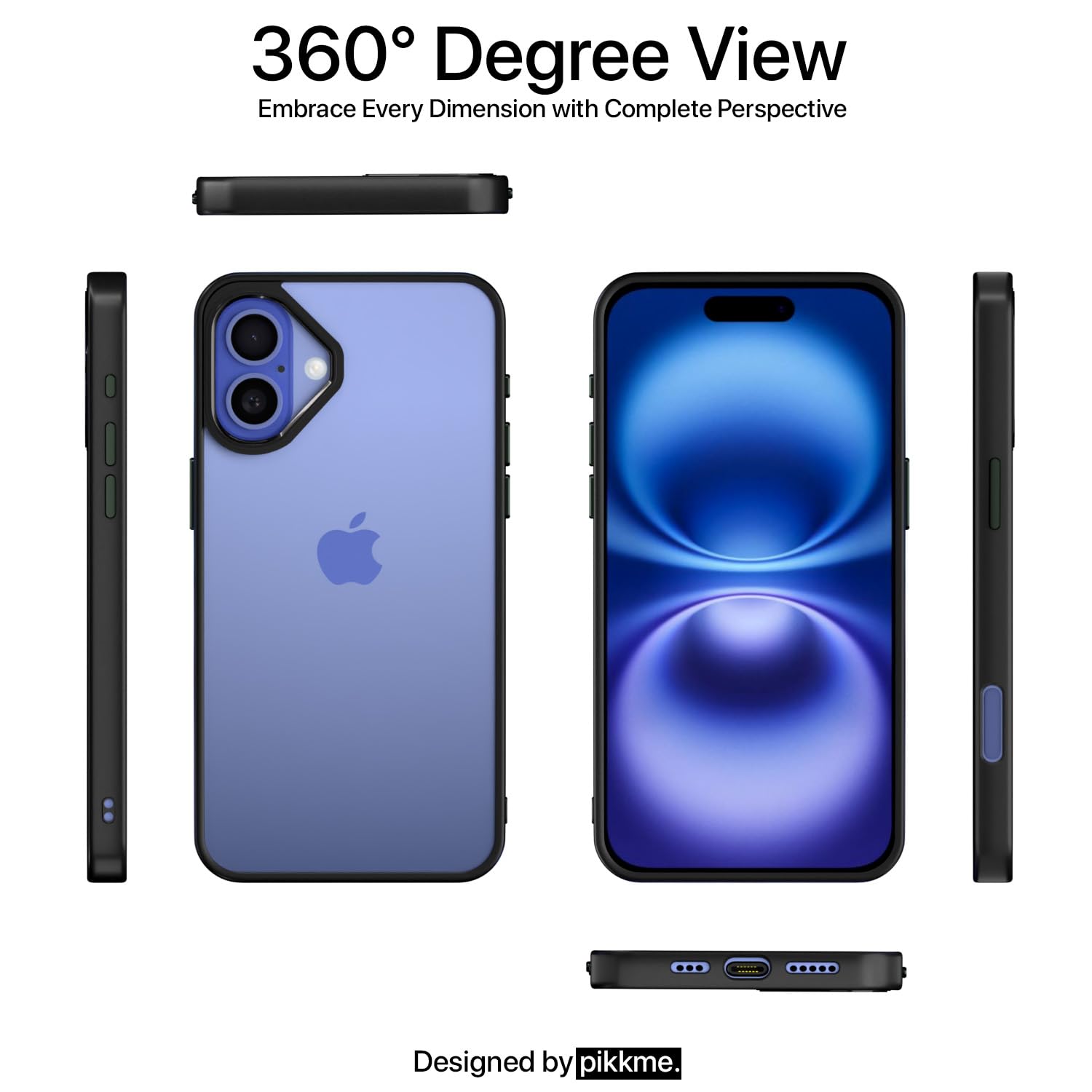 Pikkme iPhone 16 Electroplated Crome Metal Ring Back Case (Black)